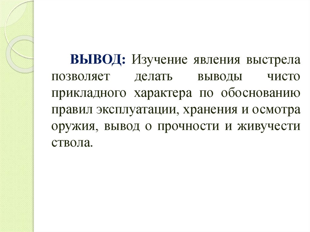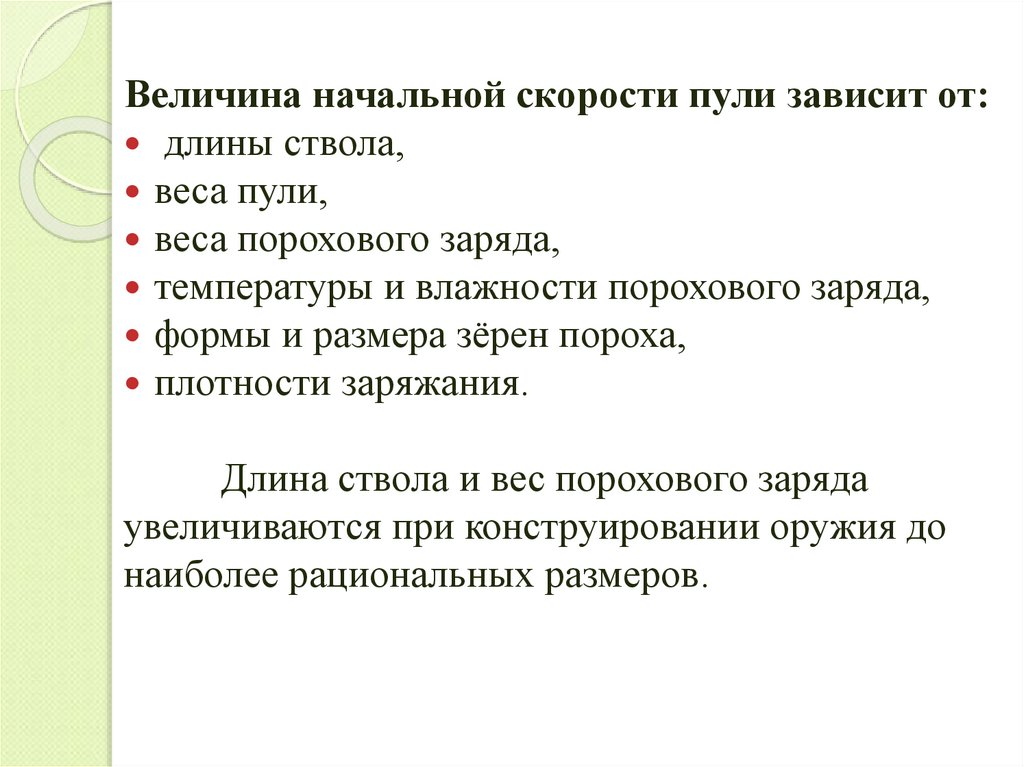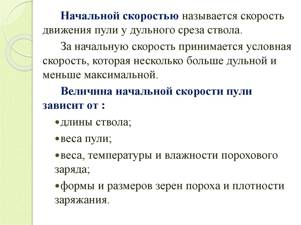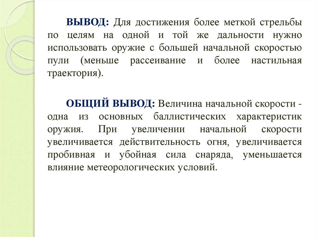 ОБЩИЙ ВЫВОД: Величина начальной скорости одна из основных баллистических характеристик