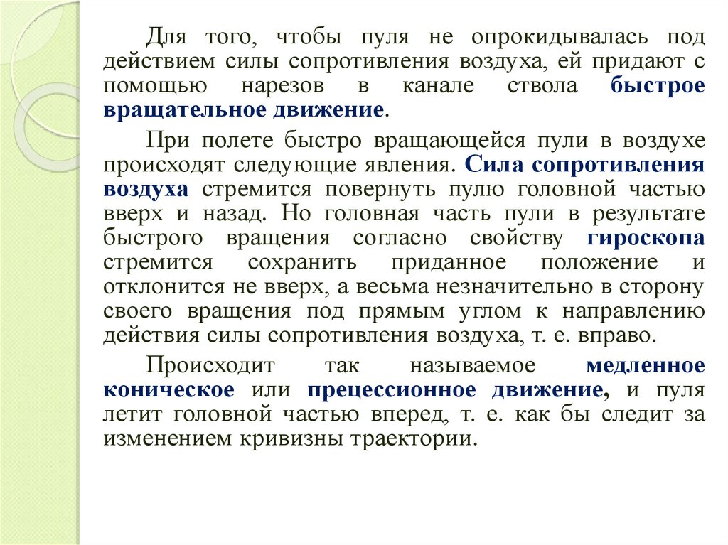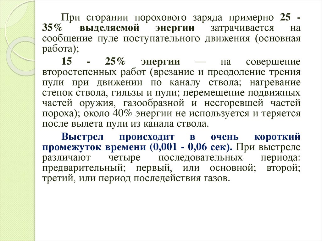 При сгорании порохового заряда примерно 25 35% выделяемой энергии затрачивается насообщение пуле поступательного движения (основная