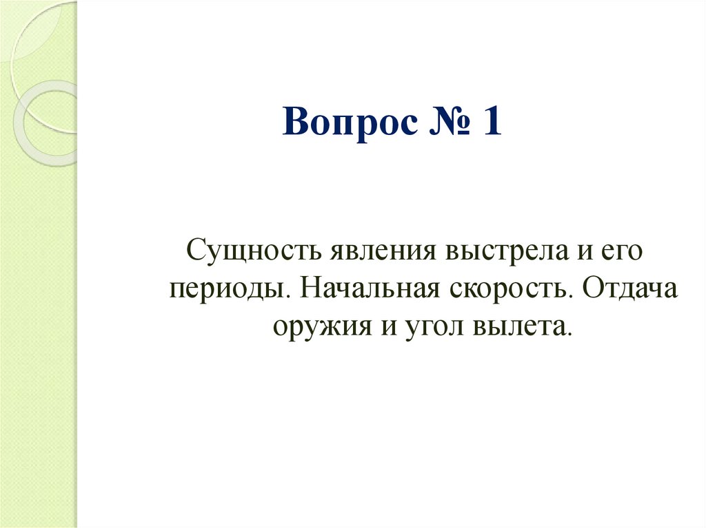 Занятие 1: Сущность явления выстрела и егопериоды. Начальная скорость. Отдача оружия и