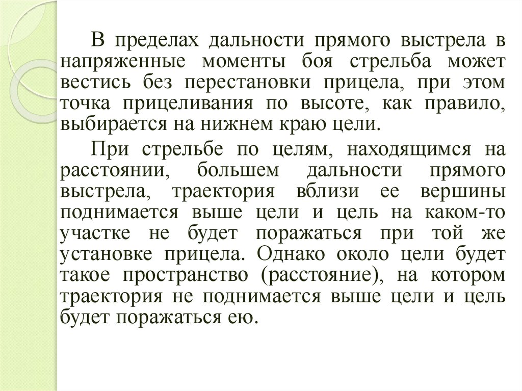 В пределах дальности прямого выстрела внапряженные моменты боя стрельба может