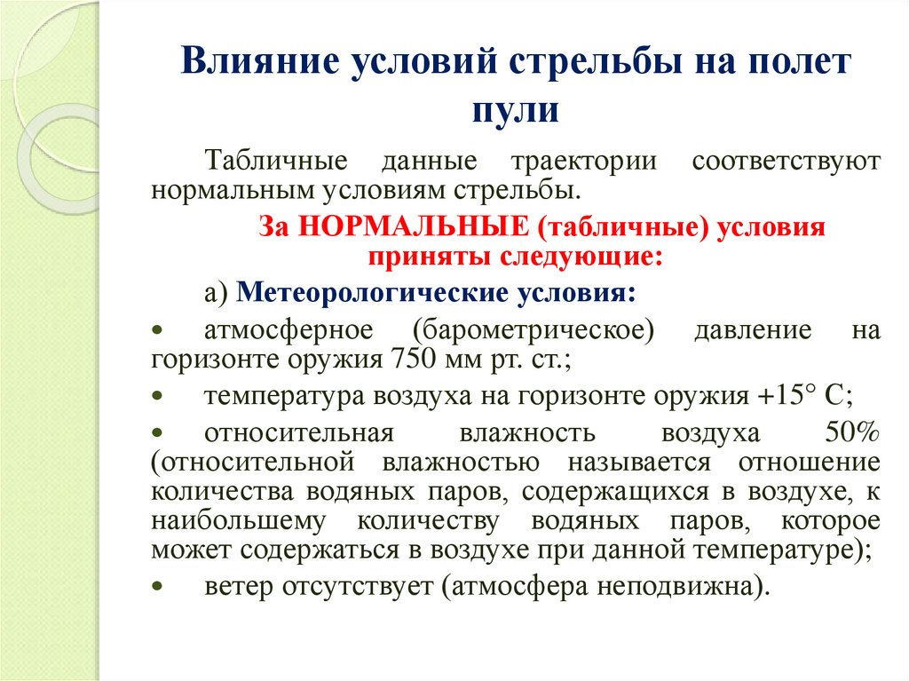 Табличные данные траектории соответствуютнормальным условиям стрельбы.