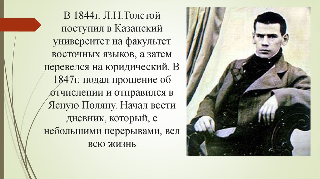 В 1844г. Л.Н.Толстойпоступил в Казанский