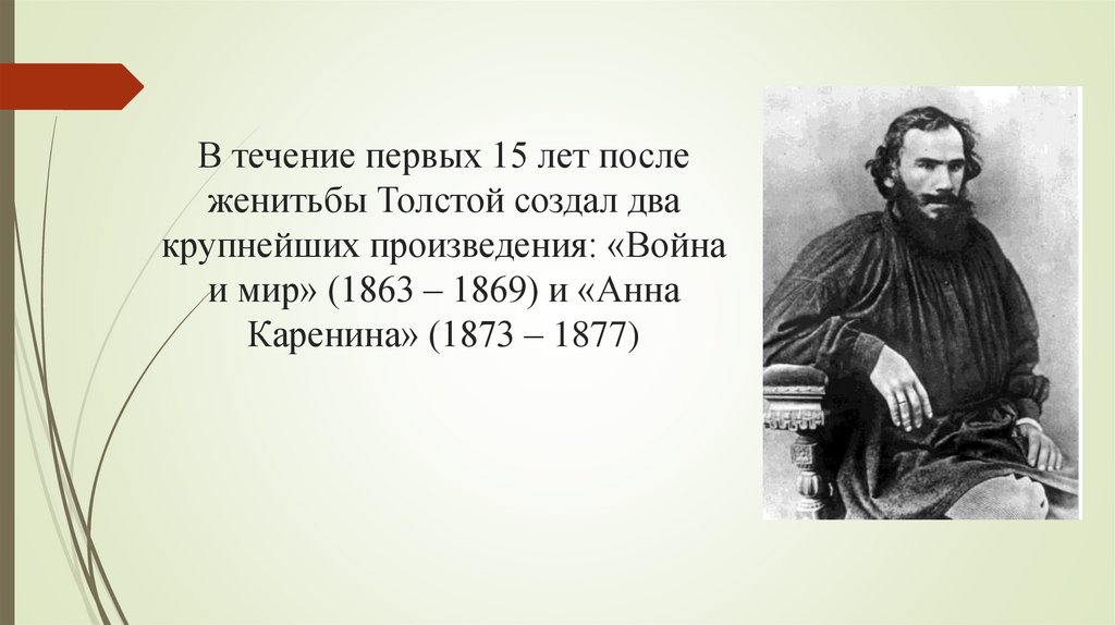 В течение первых 15 лет послеженитьбы Толстой создал два