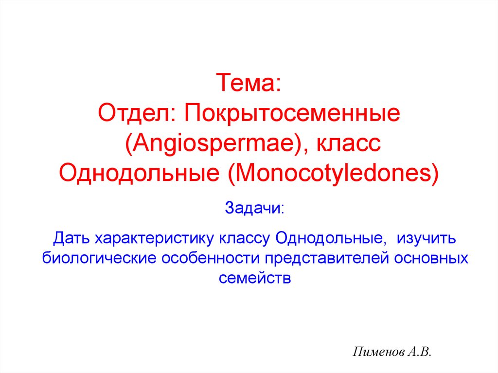 Отдел: Покрытосеменные (Angiospermae), класс Однодольные (Monocotyledones)