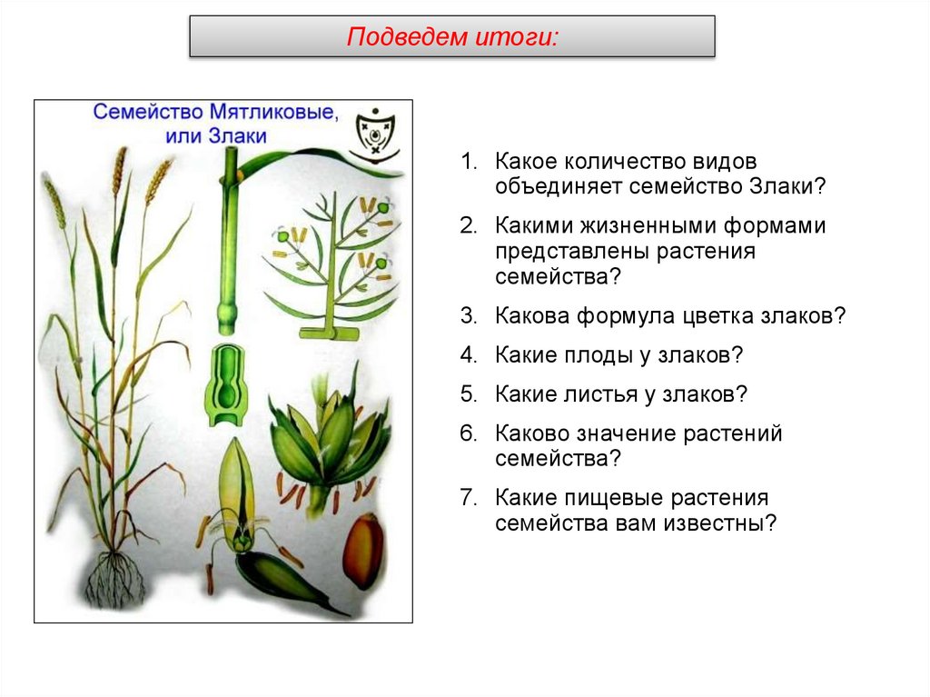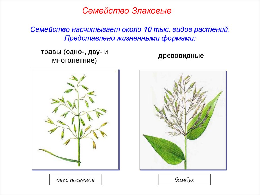 Семейство ЗлаковыеСемейство насчитывает около 10 тыс. видов растений.
