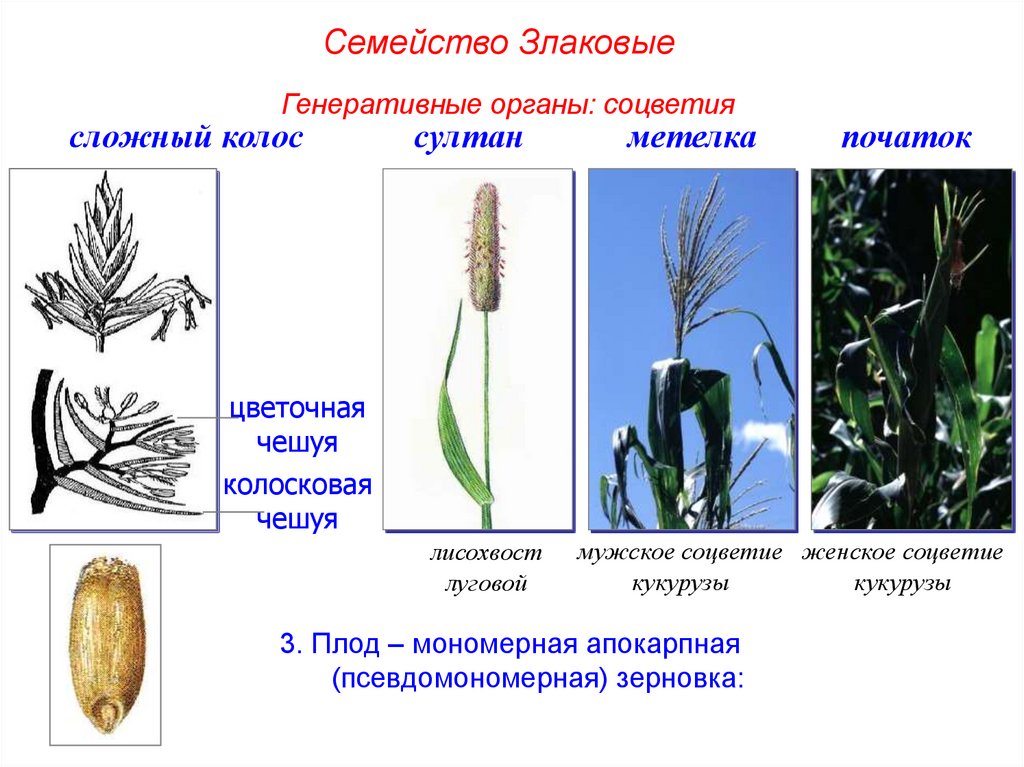 Семейство ЗлаковыеГенеративные органы: соцветия