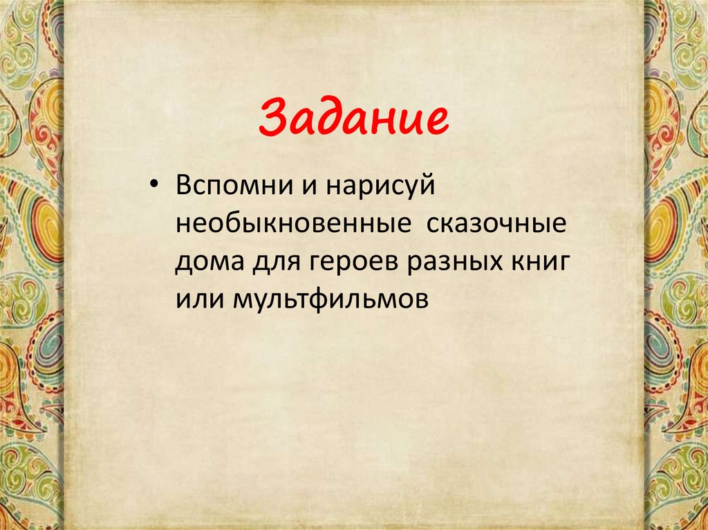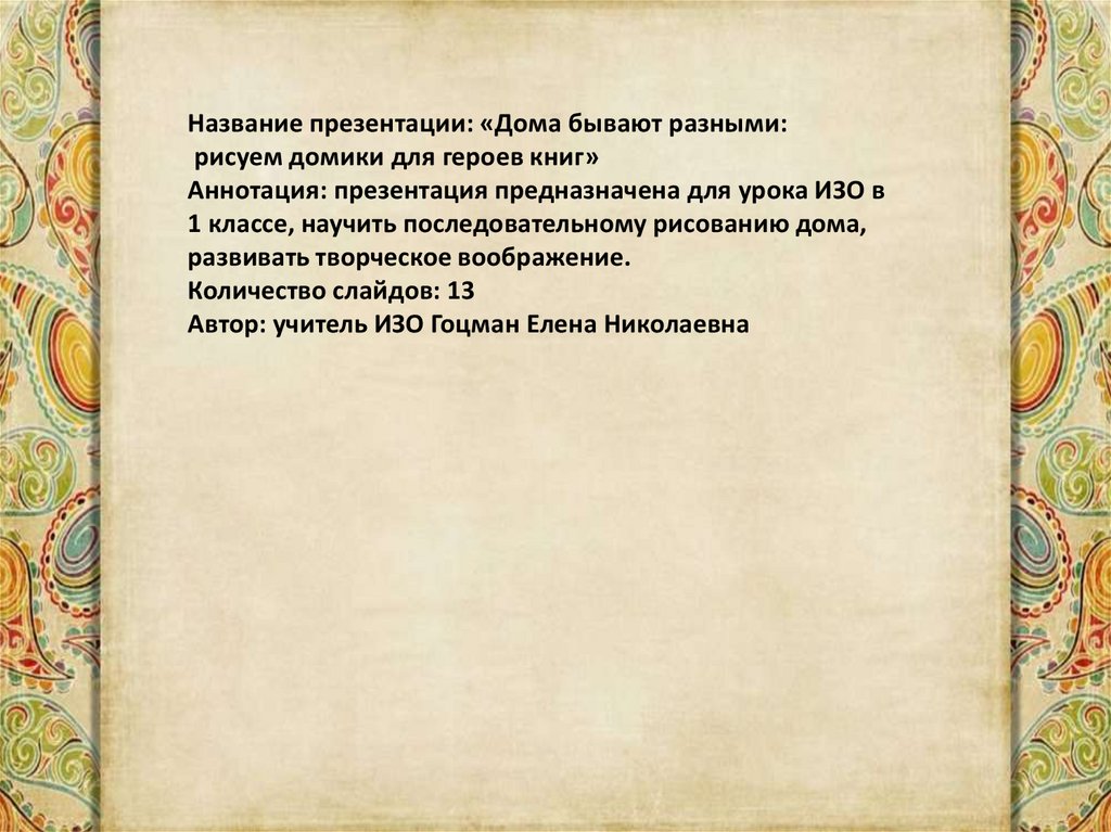 Название презентации: «Дома бывают разными:рисуем домики для героев книг»