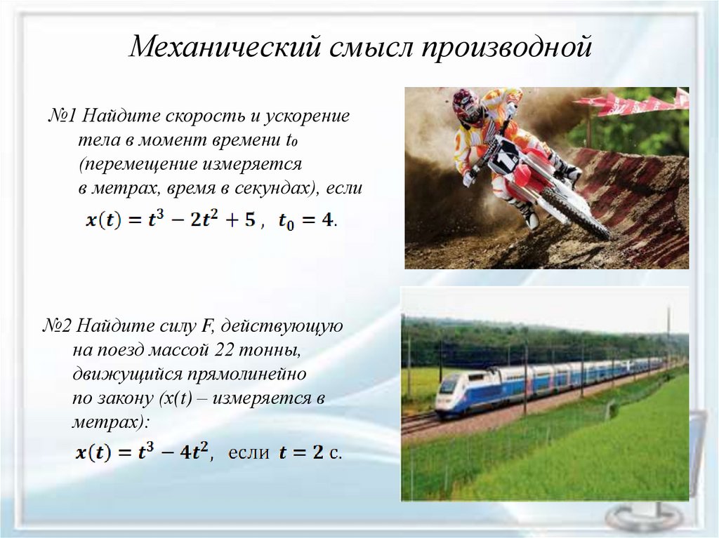 Механический смысл производной№1 Найдите скорость и ускорение