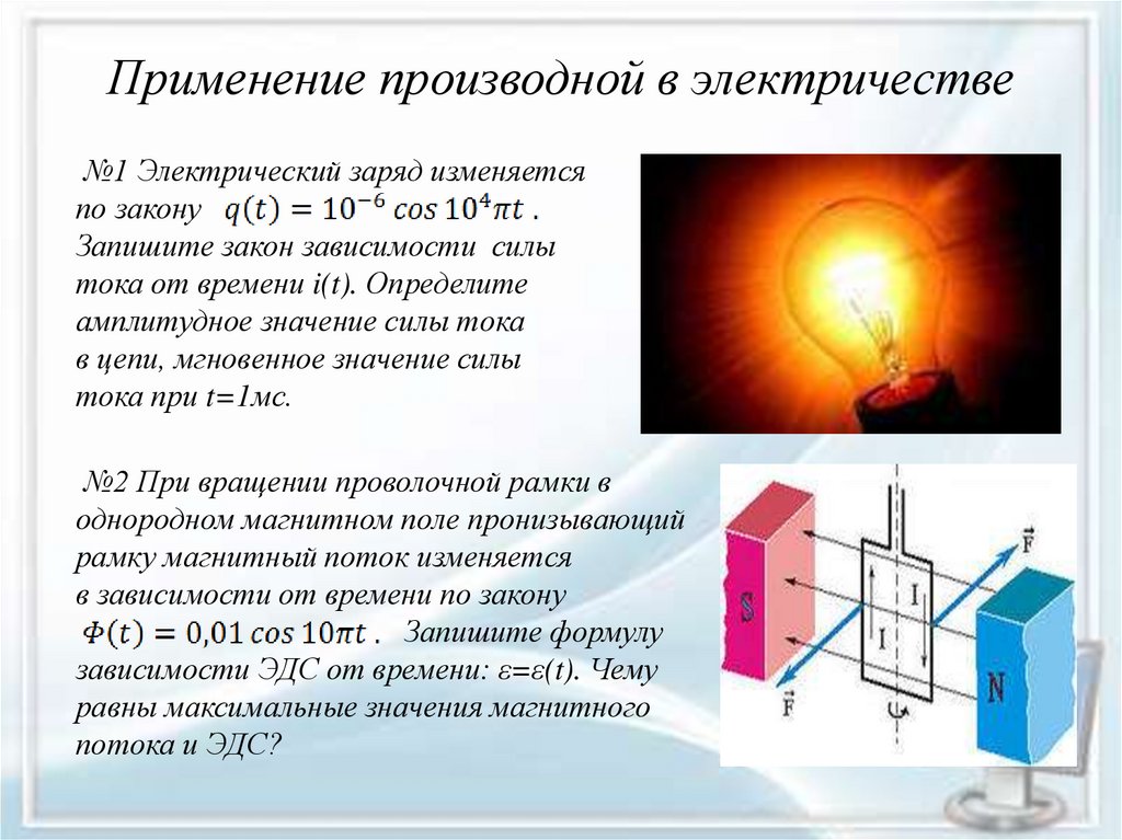 Применение производной в электричестве№1 Электрический заряд изменяется