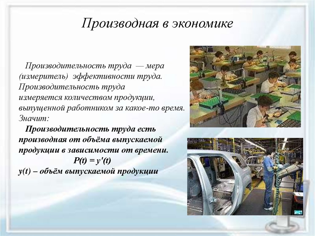 Производная в экономикеПроизводительность труда — мера