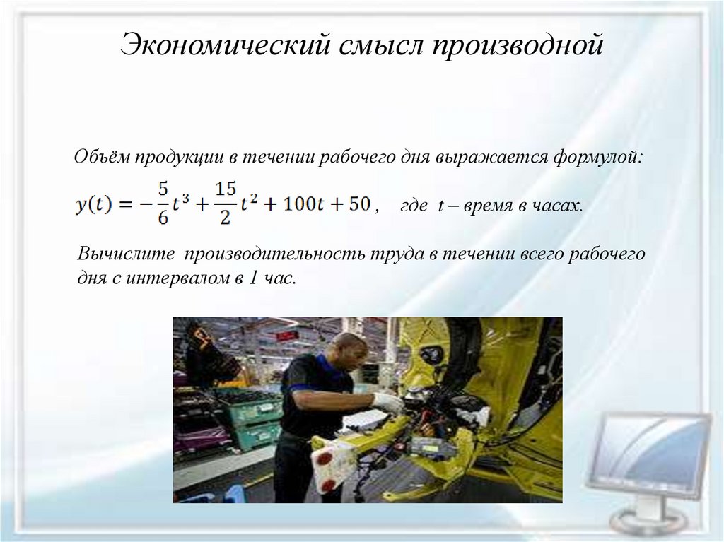 Экономический смысл производнойОбъём продукции в течении рабочего дня выражается формулой:
