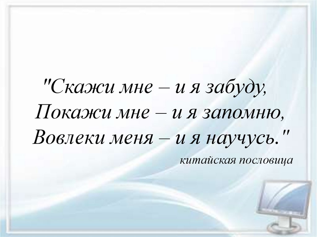 ″Скажи мне – и я забуду,Покажи мне – и я запомню,