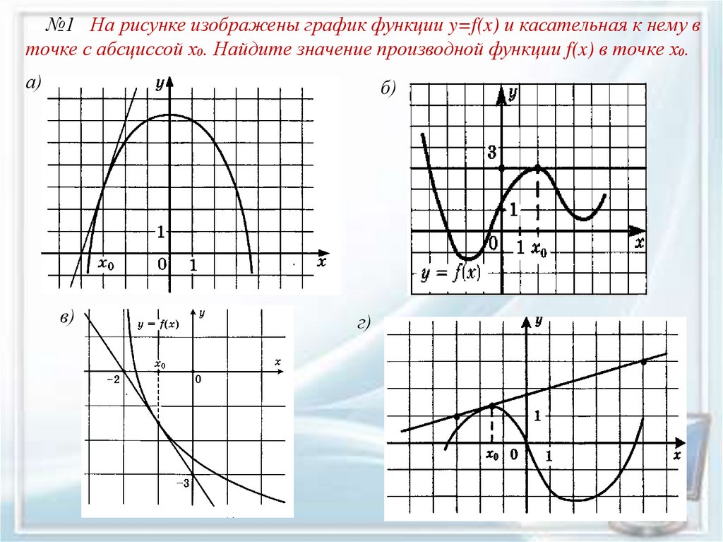 №1 На рисунке изображены график функции y=f(x) и касательная к нему вточке с абсциссой х₀. Найдите значение производной функции f(x) в точке х₀.