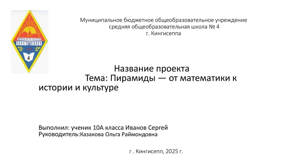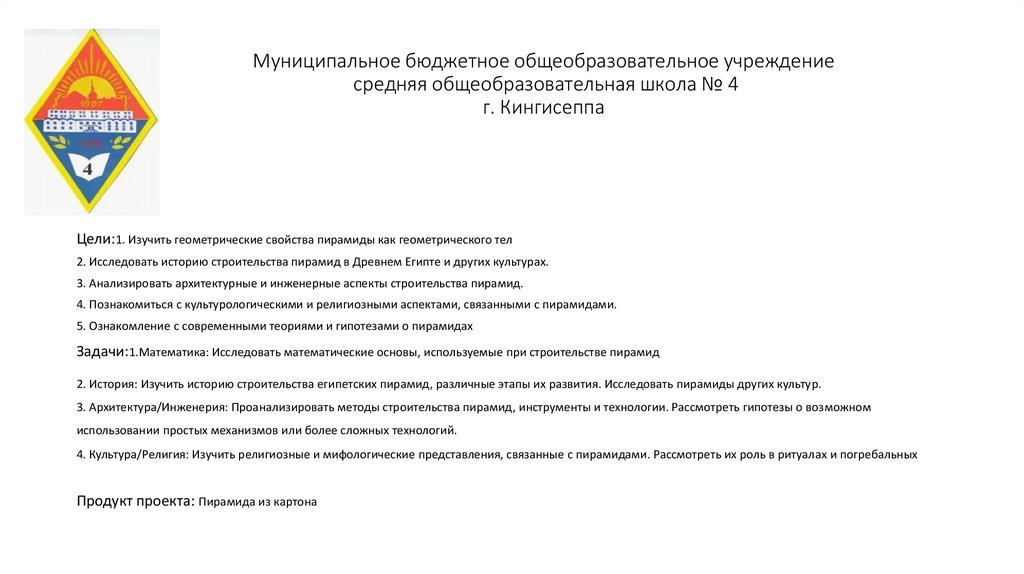 Задачи:1.Математика: Исследовать математические основы, используемые при строительстве пирамид