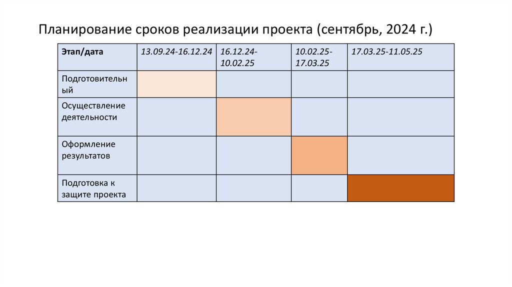 Планирование сроков реализации проекта (сентябрь, 2024 г.)Этап/дата