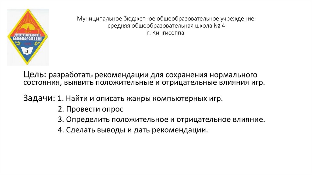 Муниципальное бюджетное общеобразовательное учреждениесредняя общеобразовательная школа № 4