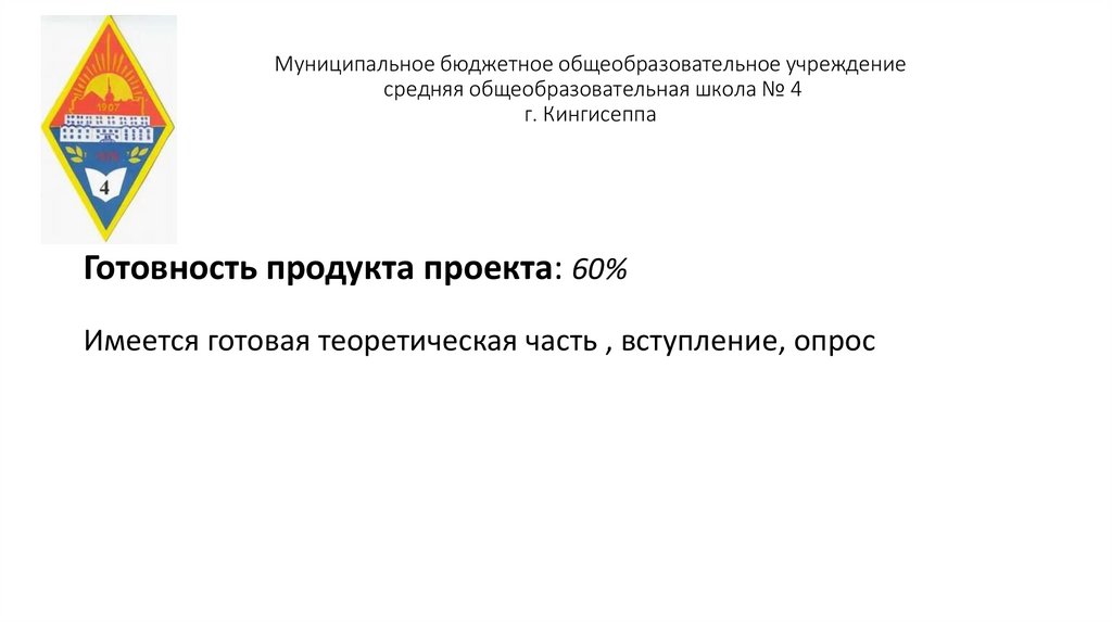 Готовность продукта проекта: 60%