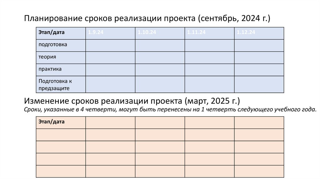 Изменение сроков реализации проекта (март, 2025 г.)