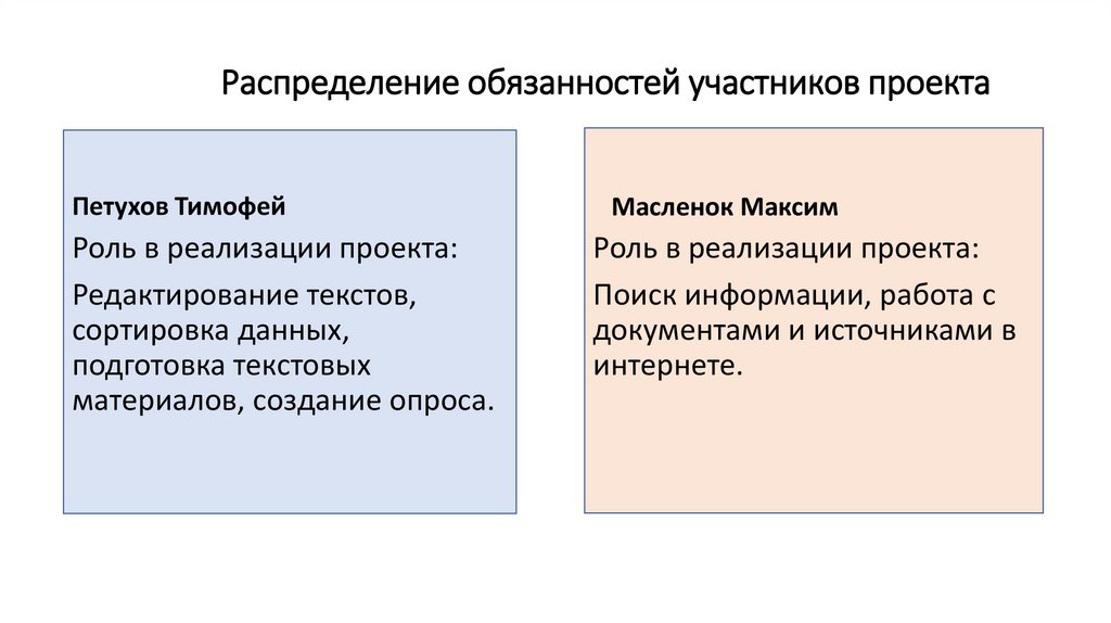 Распределение обязанностей участников проектаПетухов Тимофей