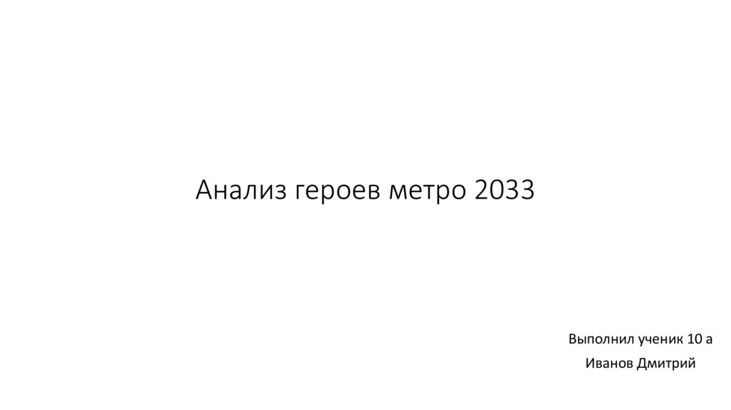 Анализ героев метро 2033Выполнил ученик 10 а