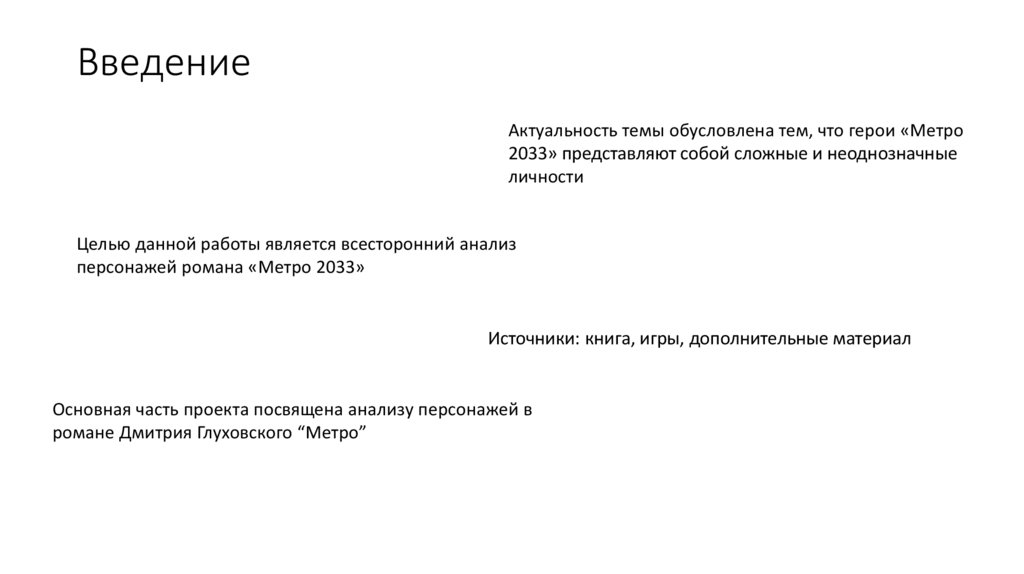 ВведениеАктуальность темы обусловлена тем, что герои «Метро