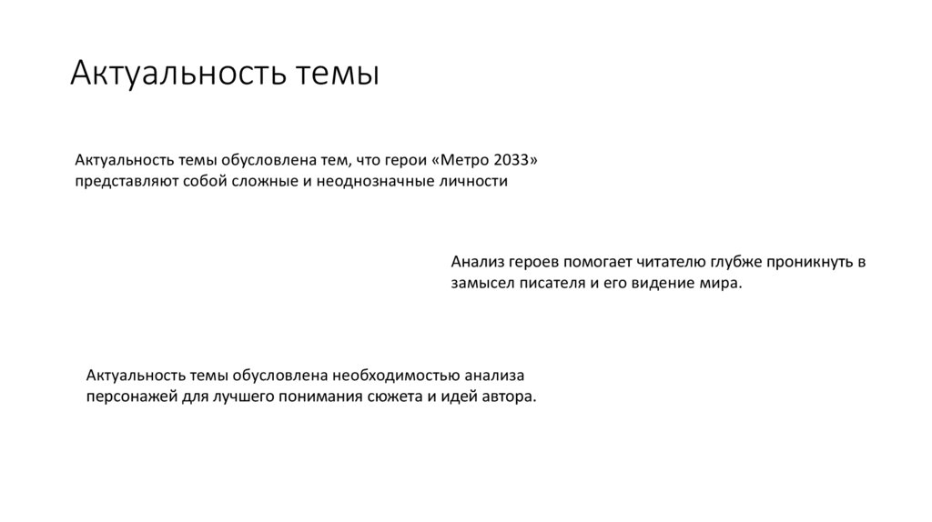 Актуальность темыАктуальность темы обусловлена тем, что герои «Метро 2033»