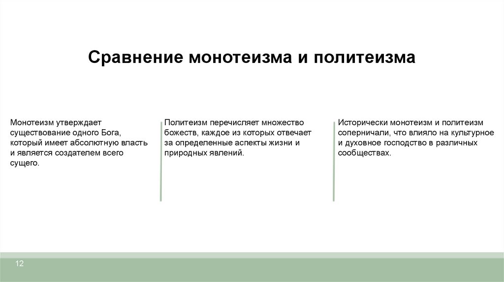 Сравнение монотеизма и политеизмаМонотеизм утверждает