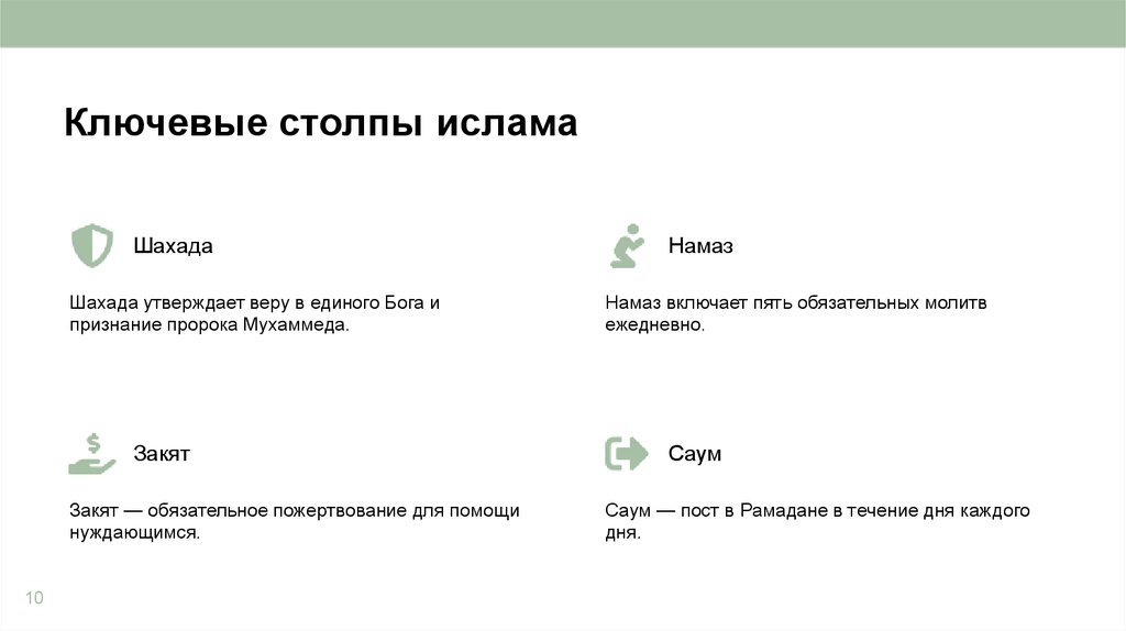 Шахада, Намаз, Закят, Саум и Хадж — основные