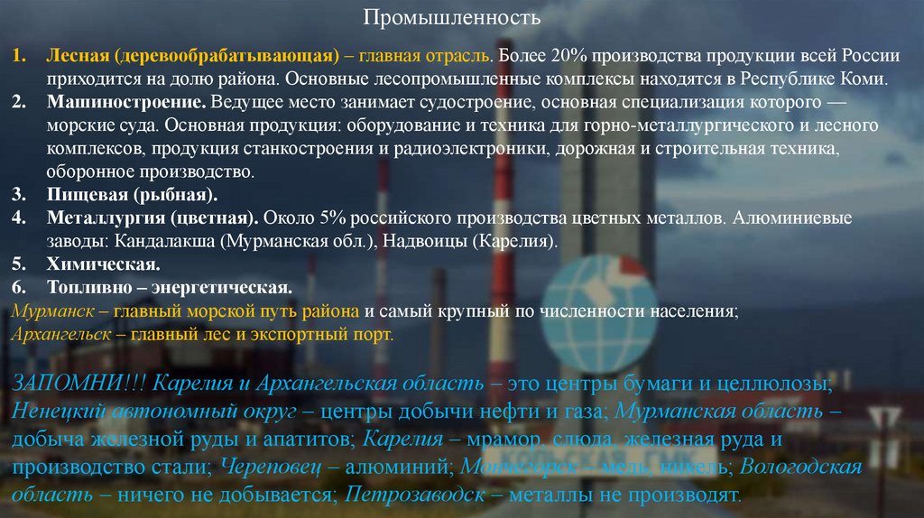 ЗАПОМНИ!!! Карелия и Архангельская область – это центры бумаги и целлюлозы;