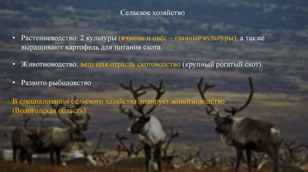 Сельское хозяйство• Растениеводство: 2 культуры (ячмень и овёс – главные культуры), а также