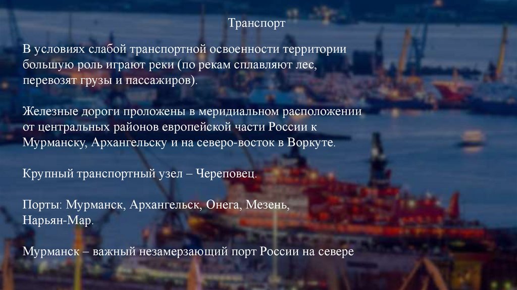 Мурманску, Архангельску и на северо-восток в Воркуте.