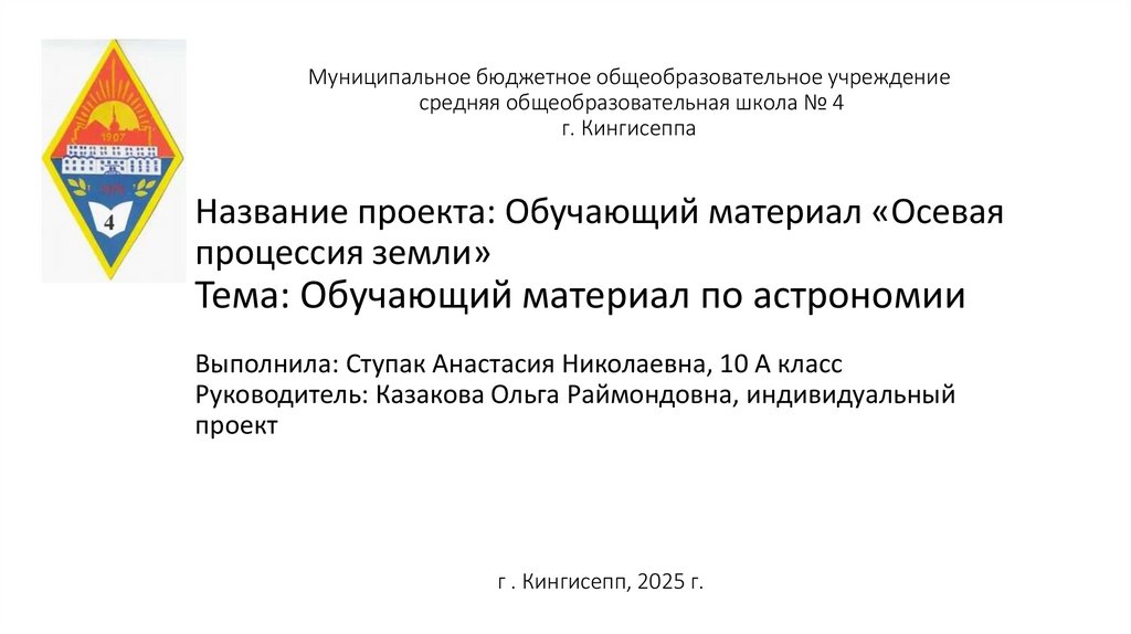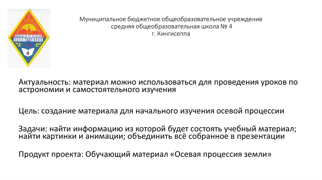 Продукт проекта: Обучающий материал «Осевая процессия земли»