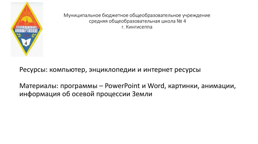 Муниципальное бюджетное общеобразовательное учреждениесредняя общеобразовательная школа № 4