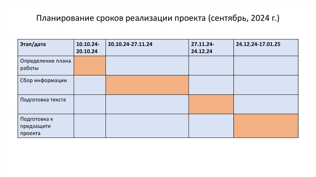 Планирование сроков реализации проекта (сентябрь, 2024 г.)Этап/дата