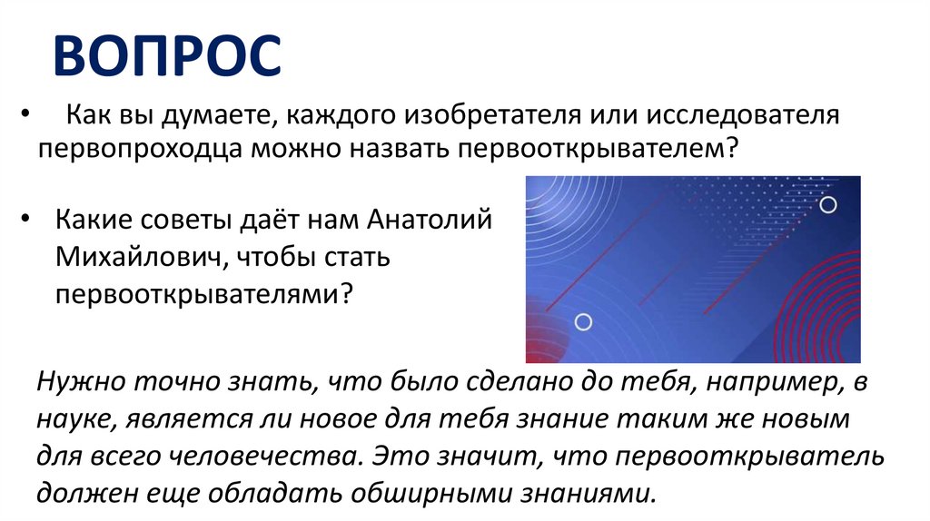 ВОПРОСКак вы думаете, каждого изобретателя или исследователя