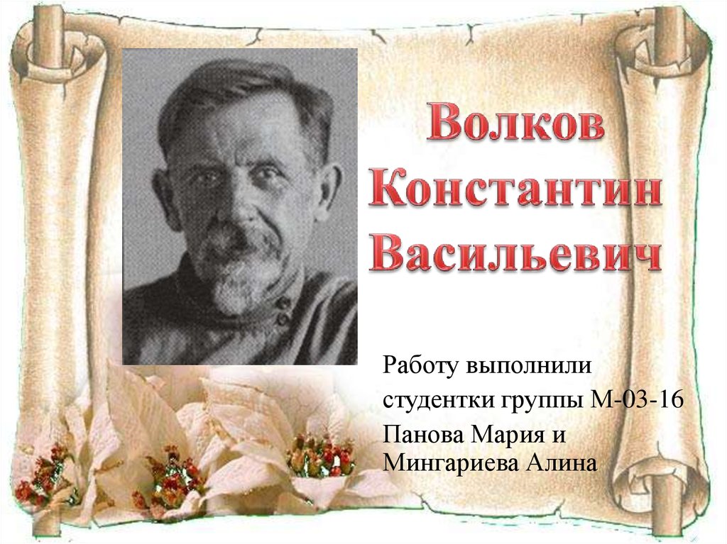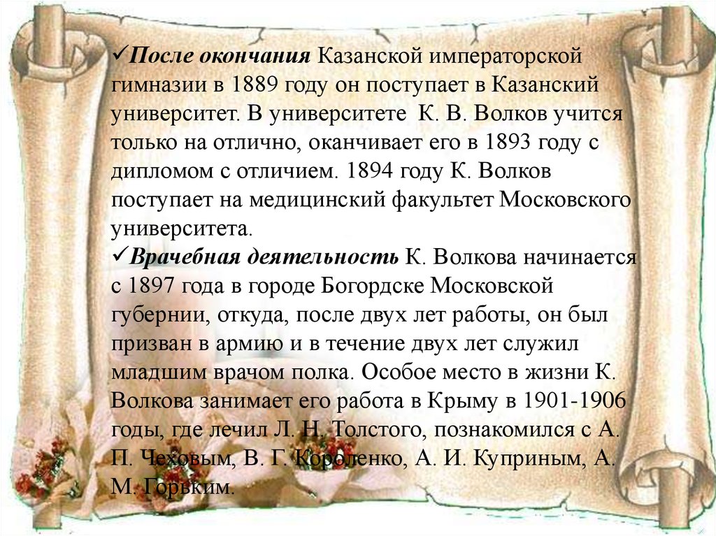 дипломом с отличием. 1894 году К. Волков