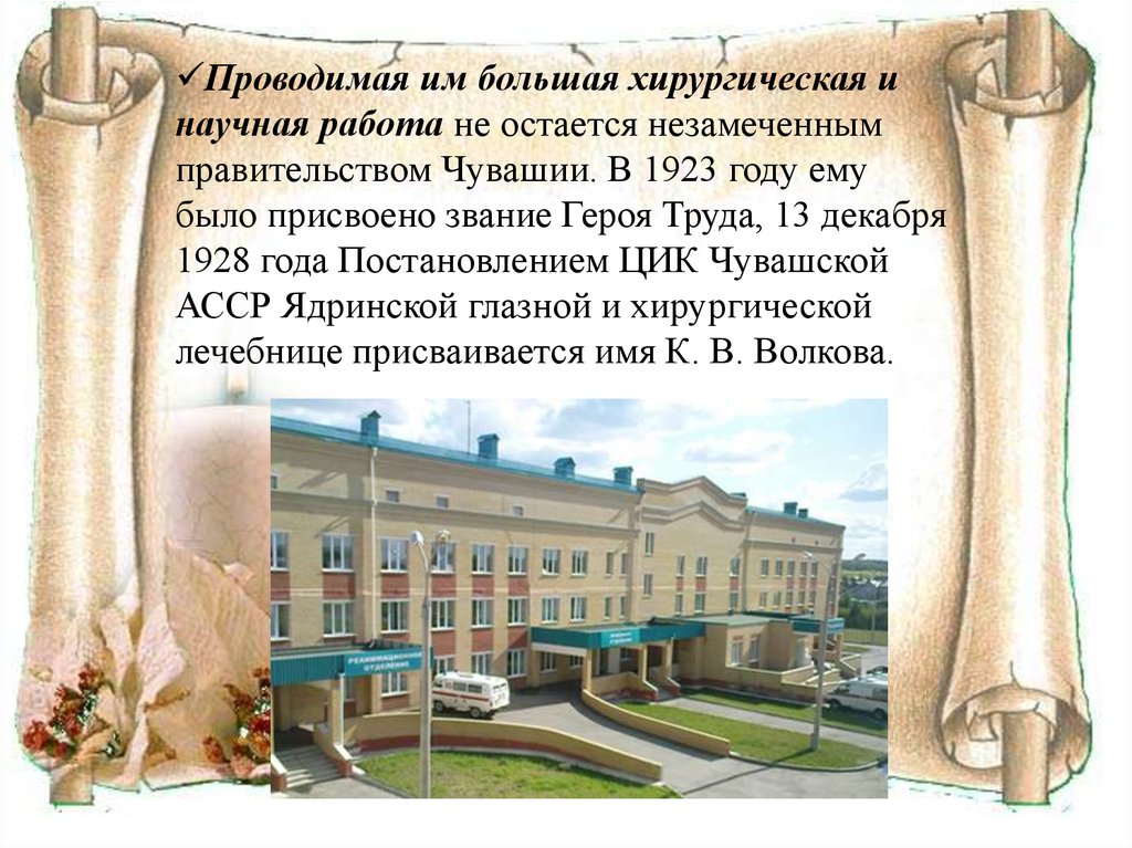 Вклад Волкова в медицину Чувашской