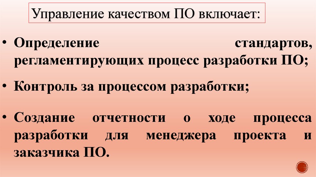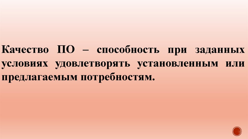 Качество ПО – способность при заданныхусловиях удовлетворять установленным или