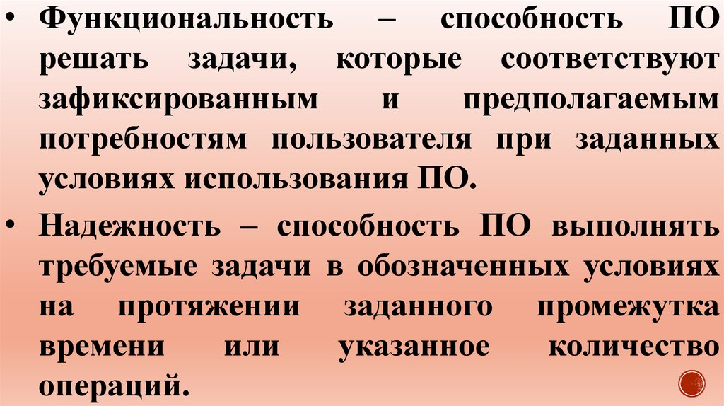 • Функциональность – способность ПОрешать задачи, которые соответствуют