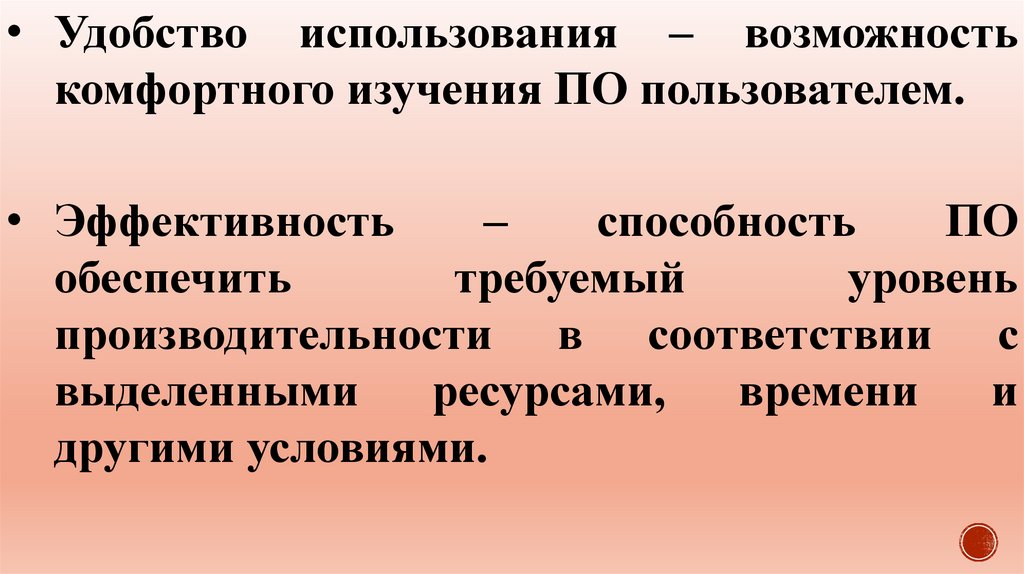 • Удобство использования – возможностькомфортного изучения ПО пользователем.