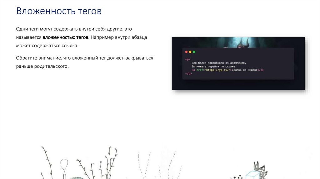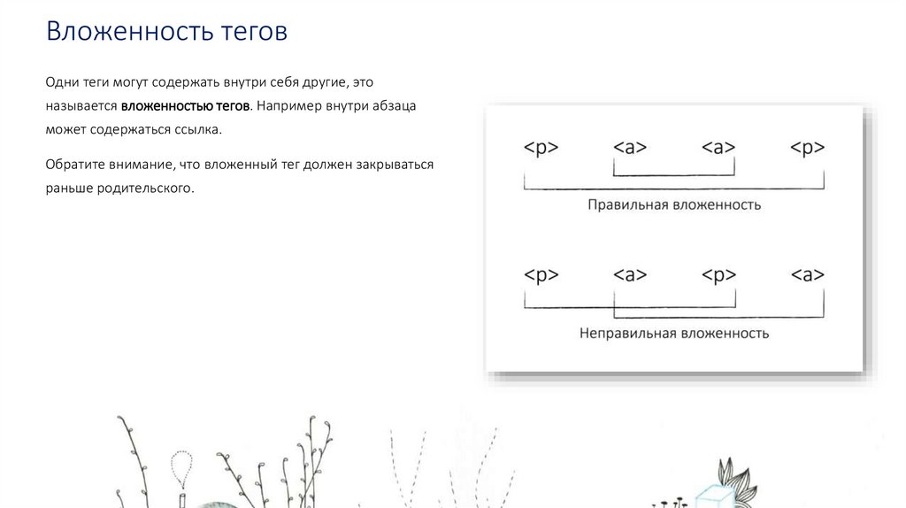 Вложенность теговОдни теги могут содержать внутри себя другие, это