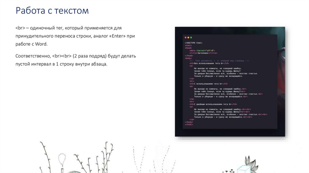 Работа с текстом<b> … </b> – делает текст жирным. Происходит от слова