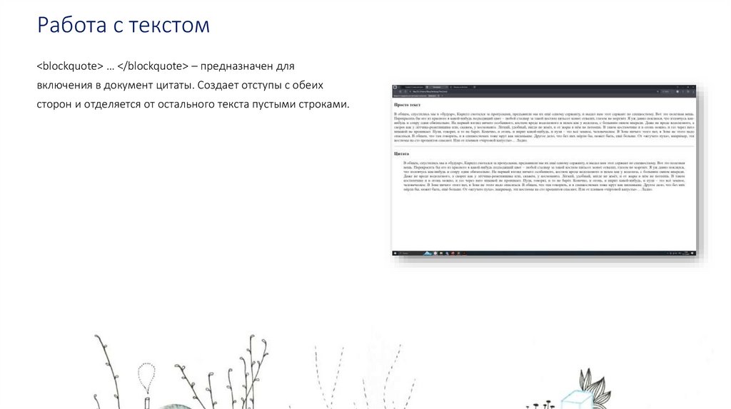 Работа с текстом<blockquote> … </blockquote> – предназначен для