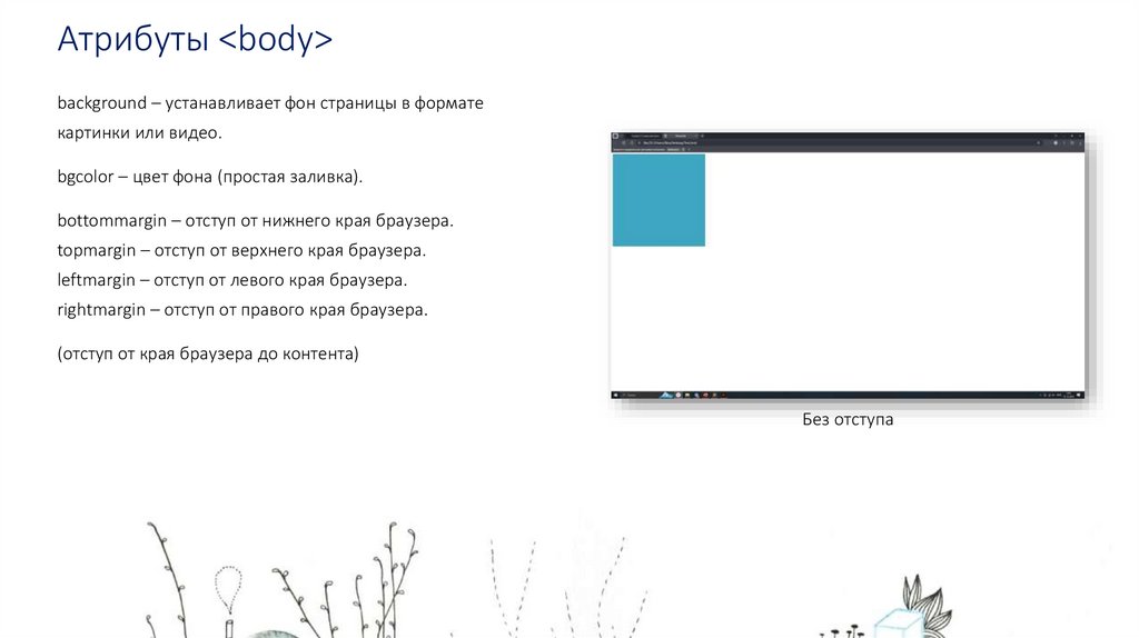 Атрибуты <body>background – устанавливает фон страницы в формате