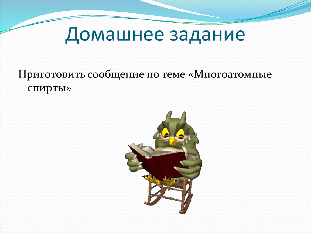 Приготовить сообщение по теме «Многоатомныеспирты»