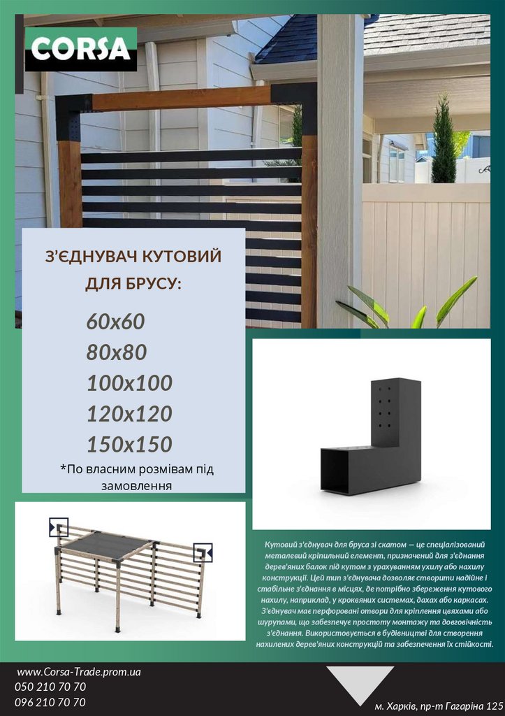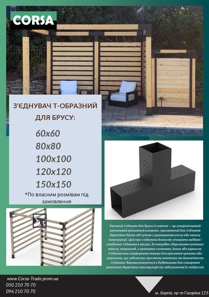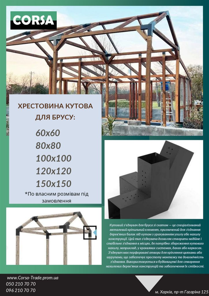 кріплення дерев'яних брусів під кутом 60/45 градусів. Вона