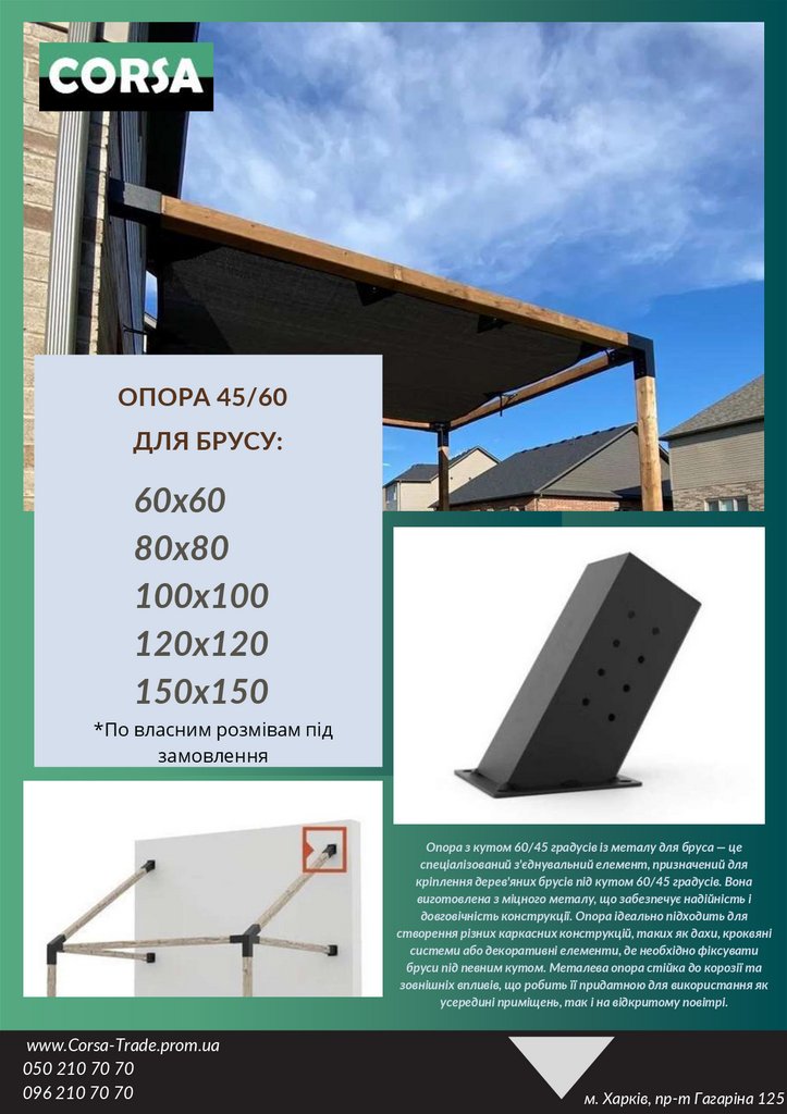 Опора з кутом 60/45 градусів із металу для бруса — це