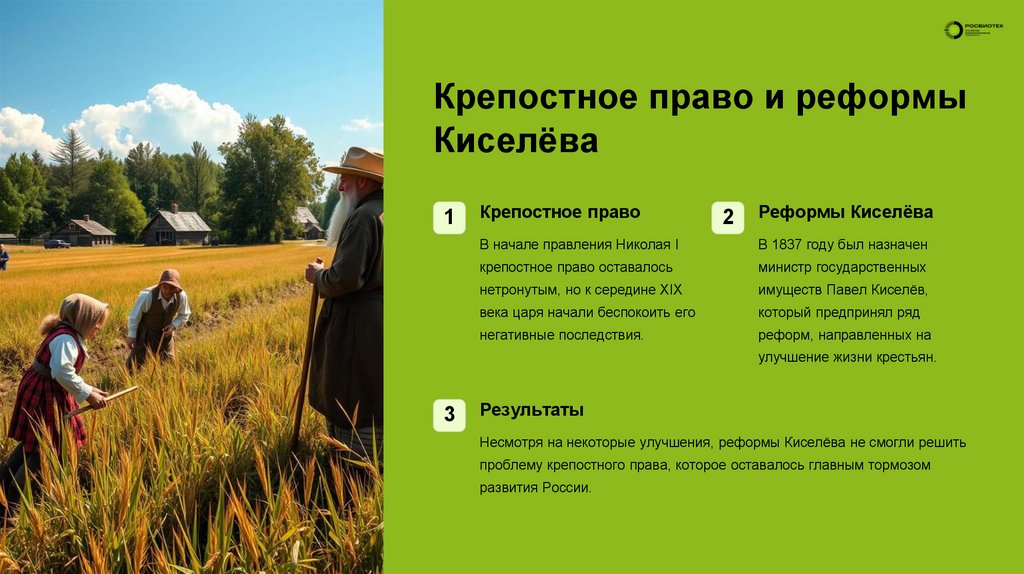 Несмотря на некоторые улучшения, реформы Киселёва не смогли решить