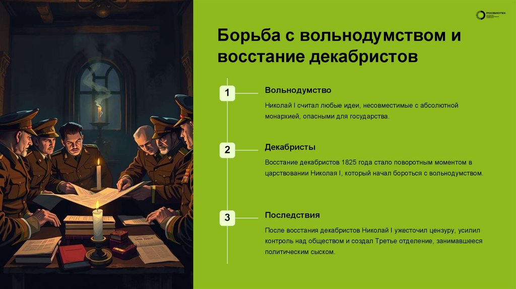 После восстания декабристов Николай I ужесточил цензуру, усилил