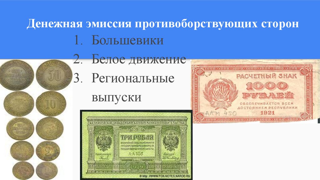 Денежная эмиссия противоборствующих сторон1. Большевики